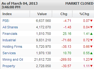 At the end of the trading day, however, bullish investors were able to curb the limit of losses to just 4.71pts, helping pull the index back to the 6,600-level. The PSEi closed today’s trading just 0.07% lower at 6,637.56.