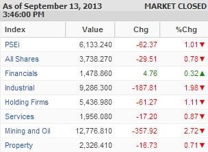 These stocks – part of the benchmark Philippine Stock Exchange index (PSEi) – weighed down the index, which dropped by 1.01% or 62.37 points to close this week’s trading at 6,133.24, slightly recovering from the 116.59-point dip during intraday.