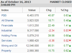 Manila—(PHStocks)—Philippine stocks recovered on Wednesday, 16 October, as most investors expect resolutions on the US impasse on shutdown as well as the debt ceiling.