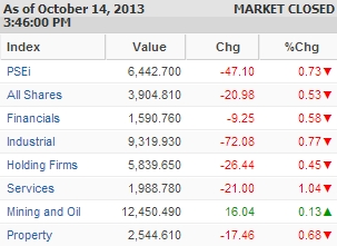 The Philippine Stock Exchange index (PSEi) slid by 0.73% or 47.1 points to close the day’s trading at 6,442.7.